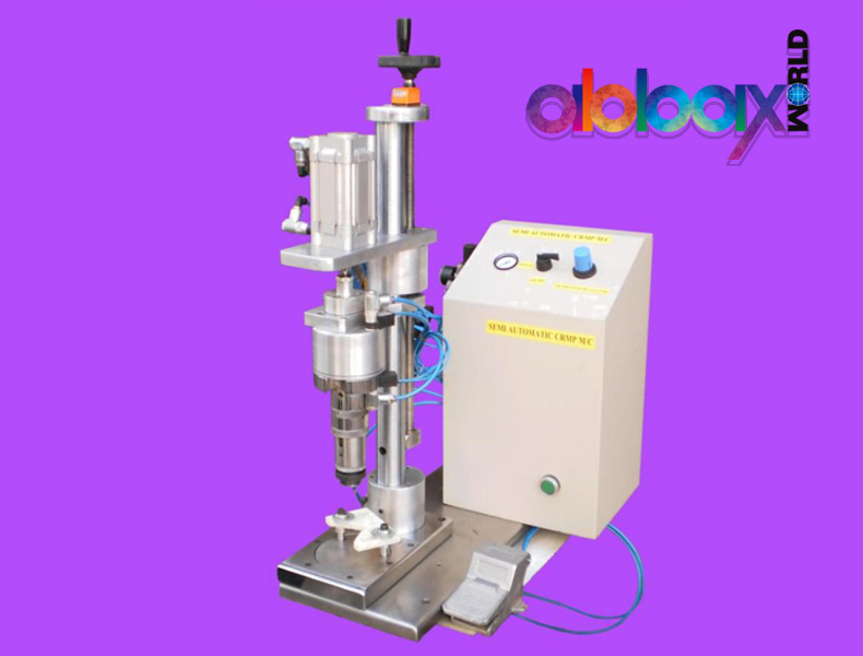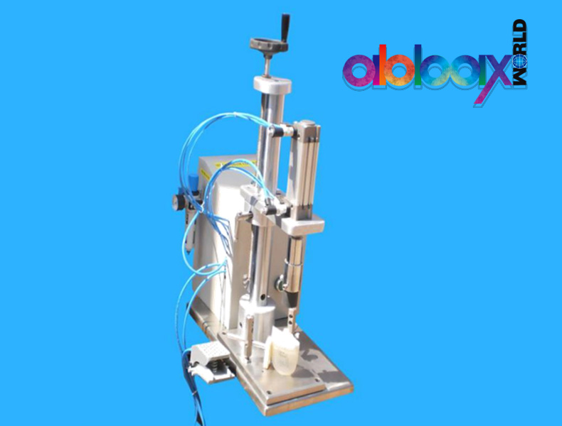 Pick up the perfume filled bottle from conveyor manually & place on the platform of crimping machine. Crimping head will come down & collet will crimp the aluminum cap. Remove the crimping bottle.