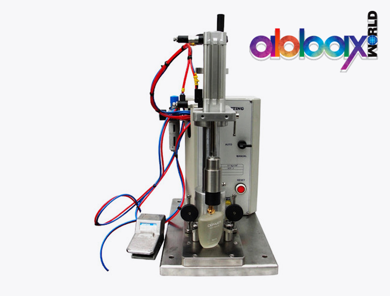 Perfume crimping machinery, perfume bottle crimping machine, manual perfume crimping machine, bottle crimping machine of perfume, semi automatic, pneumatic perfume crimping machine